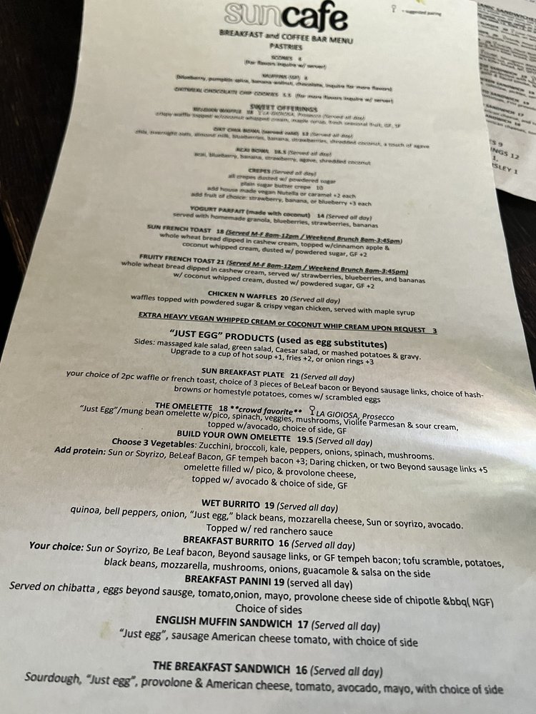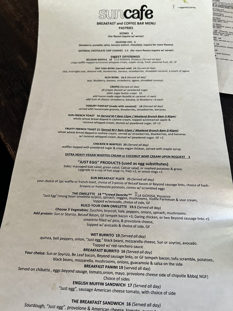 SunCafe Organic, nestled in Studio City, offers a vibrant breakfast and brunch experience that caters to everyone, especially vegans and vegetarians. The menu is a delightful fusion of healthful ingredients, featuring options like their popular avocado toast, savory breakfast panini, and standout chicken and waffles. Notably, dishes like the vegan sausage and hearty pot pie make for satisfying meals that leave you feeling guilt-free.